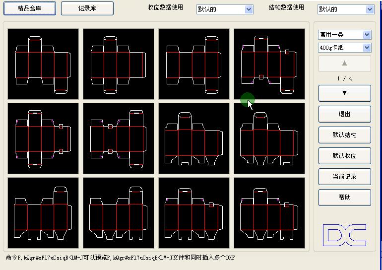 軟件功能強大,擁有自動描圖(自動掃描異型的描公仔、描不幹膠、描盒子,自動相切處理,使圓弧順滑,強製相切,彎刀機彎起來沒有反角,沒有反位)、自動拚版、常用盒型庫、精品灰板禮品盒 自動批量邊框、自動橋位、刀模計價、快速變塊……一些實用工具,完美支持CAD2004-2010電腦遠程安裝,附帶全套視頻教程 作盒型的思路(根據平常繪圖習慣或者客戶要求修改保存收位)xuanzecaizhi,xuanzehexing,shuruchangkuangaodaomotuzidongshengcheng,wenjianyicikebaocunduogedifangduogegeshi,dadatigaolehuituxiaolv,caozuoshaguahua,lingchucuo,wulunniyouwuCAD基礎,一看便會。軟件單獨運行在U盤中,不受電腦限製,永久屬於您。 這是一款能改變刀模繪圖師傅繪製盒型傳統畫法的軟件,更是一款顛覆刀模行業的神器。